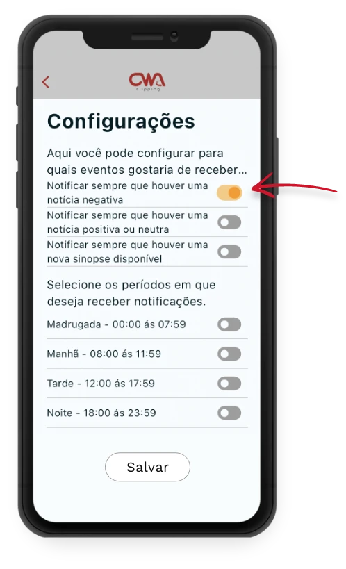 Basta você habilitar a opção “Notificar sempre que houver uma notícia negativa. Agora, os alertas sobre conteúdo negativo serão mostrados na tela do seu celular e no seu e-mail.