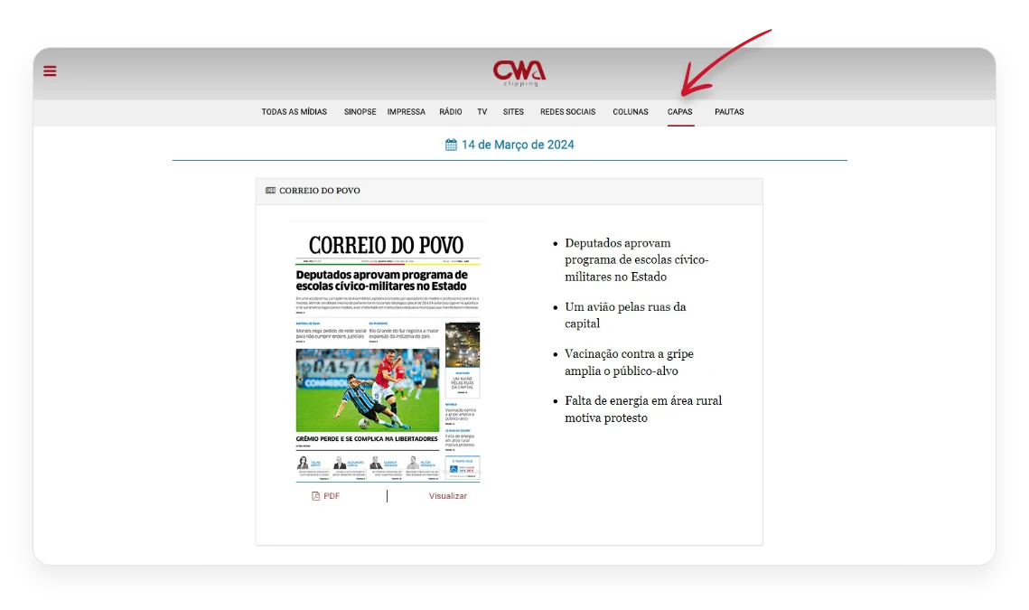 Tenha um panorama geral de como os assuntos estão sendo tratados nas capas dos periódicos.