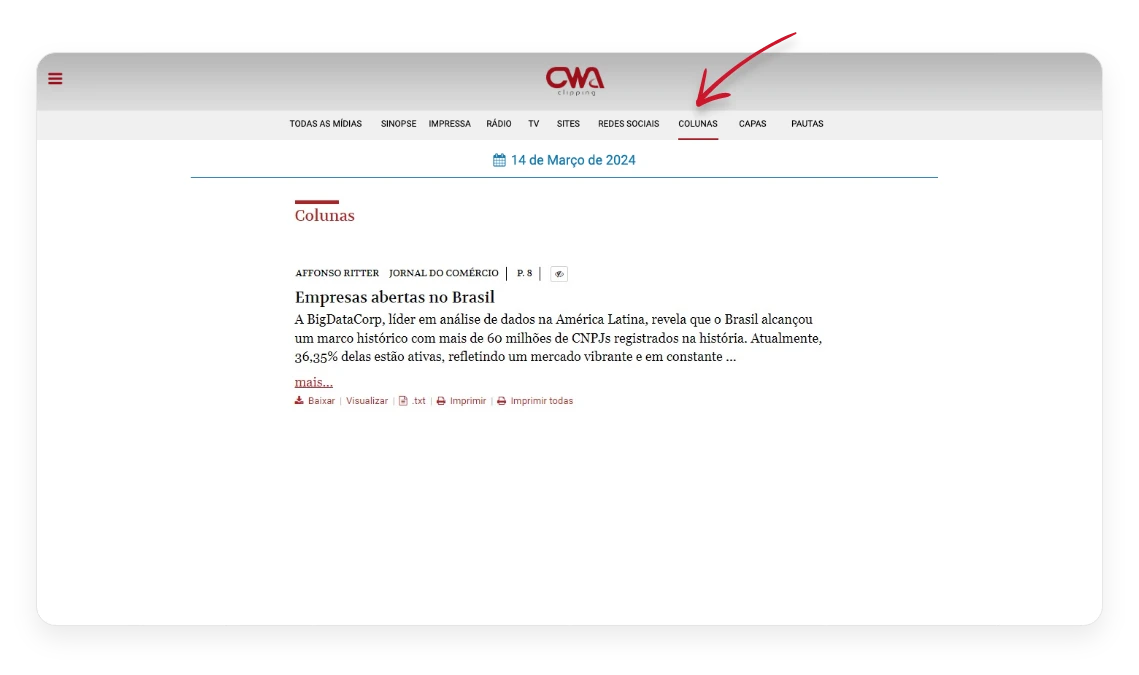 Nesta página é possível acompanhar os principais colunistas e saber quais os assuntos que estão pautando a mídia.